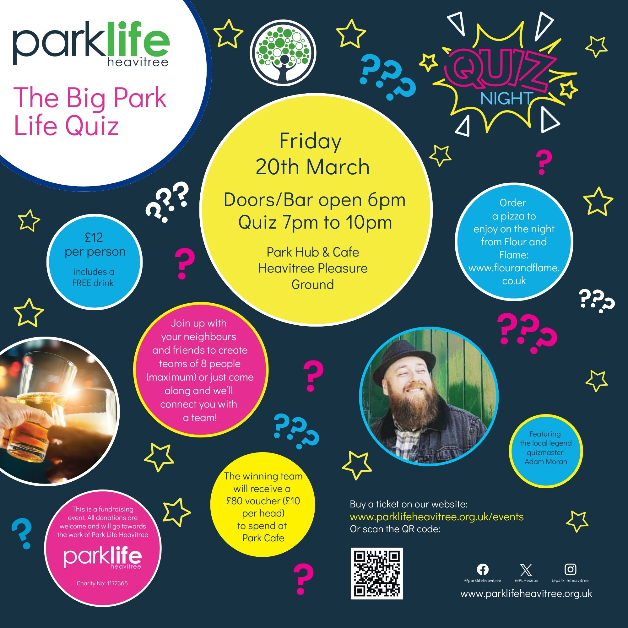 We will also have our bar up and running for the evening and the fab Flour & Flame pizza van on site – so you can eat and drink whilst you quiz!
